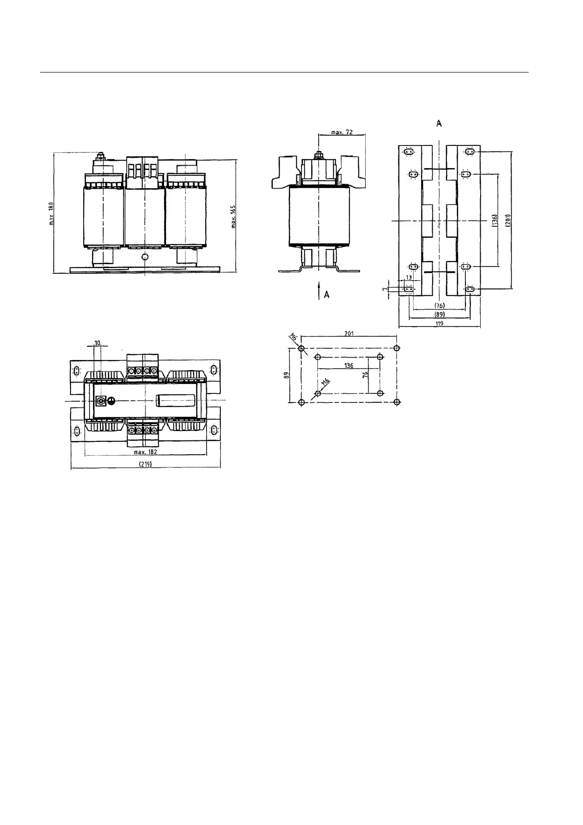 Figure 3-48 Dimension drawing of line reactor for Smart Line Module 16 kW