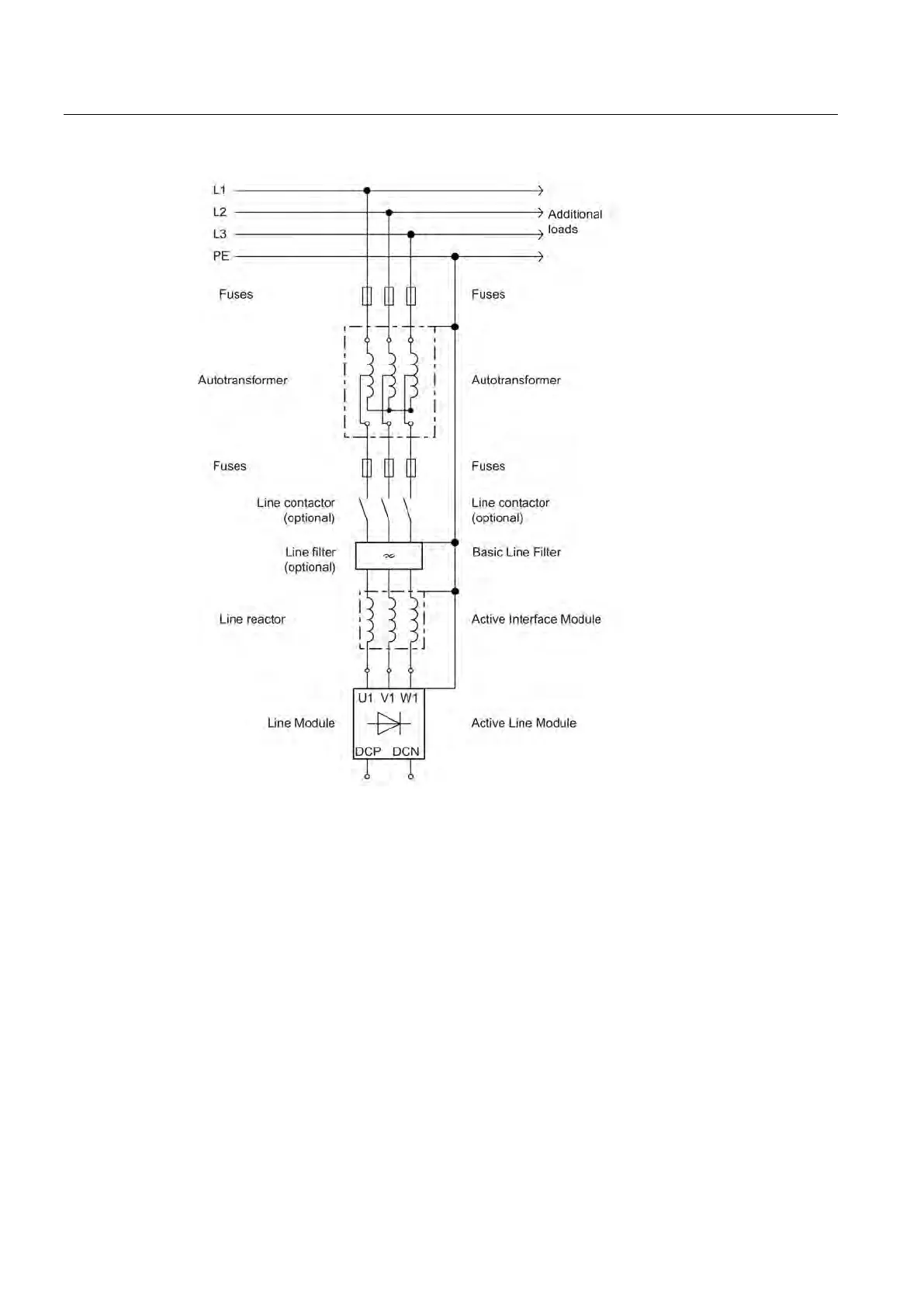 Figure 3-67 Operation of a Line Module via an autotransformer