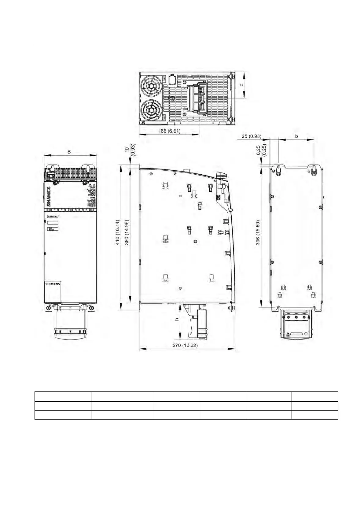 Table 4- 8 Dimensions of 36 kW and 55 kW Active Line Modules with internal air cooling