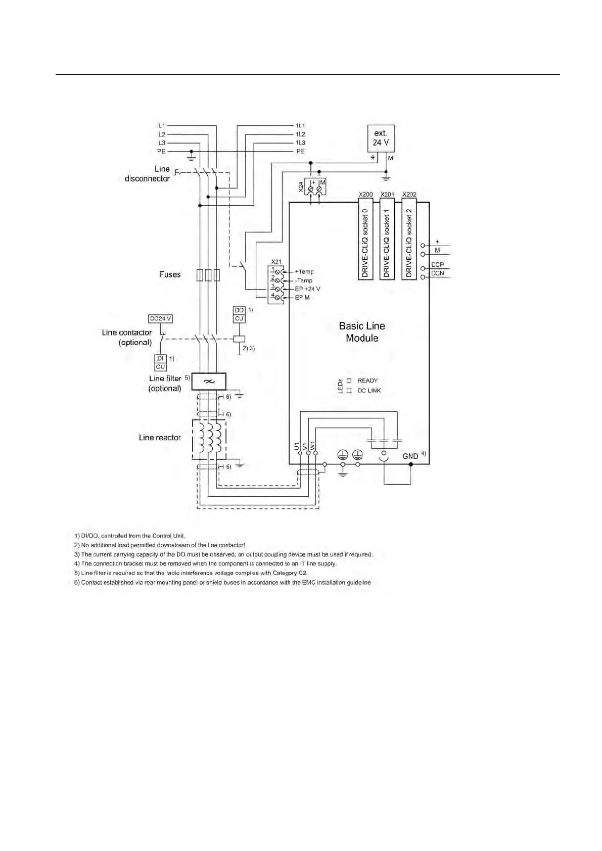 Figure 4-50 Connection example: Basic Line Module (100 kW)