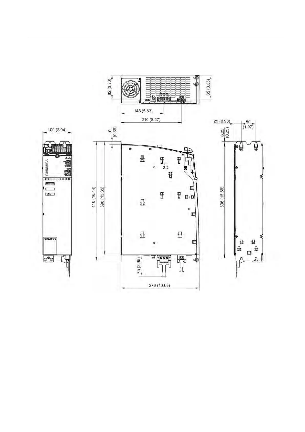 Figure 4-51 Dimension drawing of 20 kW Basic Line Module with internal air cooling, all dimensions in mm and (inches)