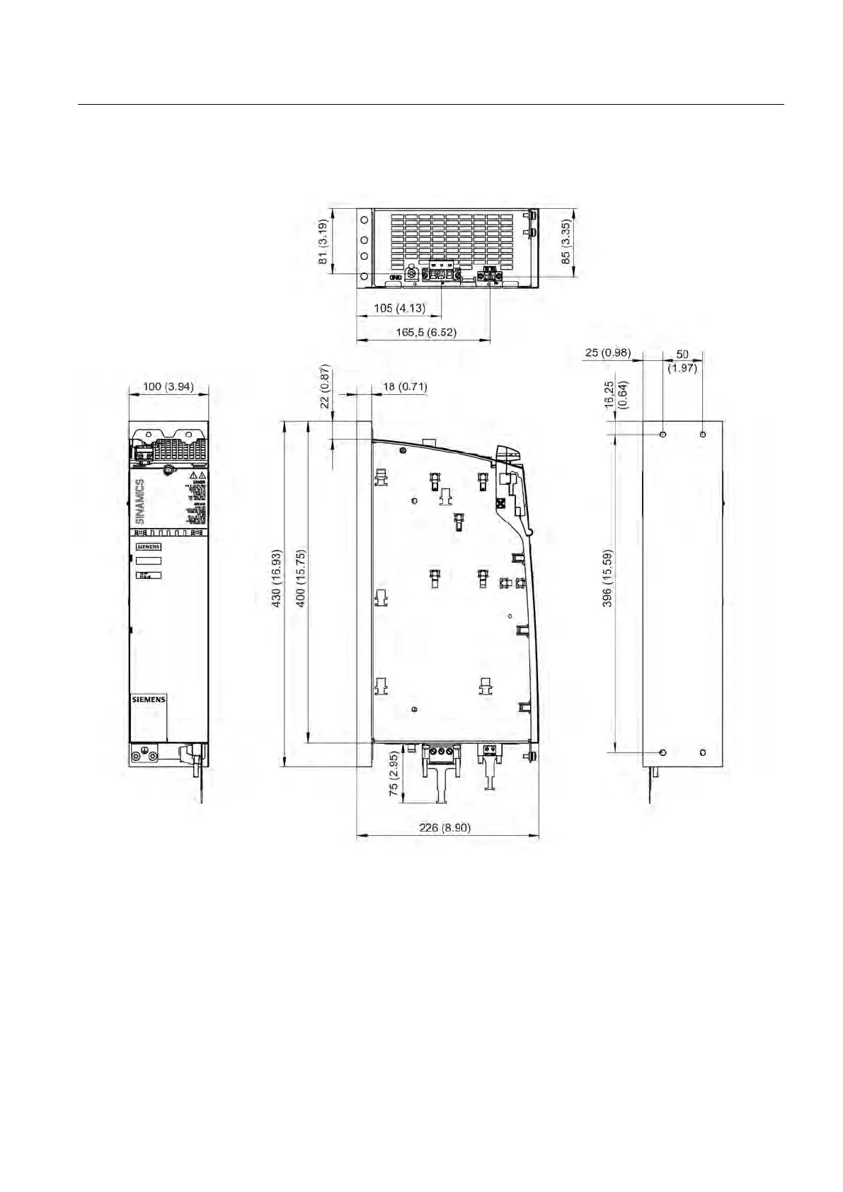Figure 4-64 Dimension drawing of 20 kW Basic Line Module with cold plate, all dimensions in mm and (inches)
