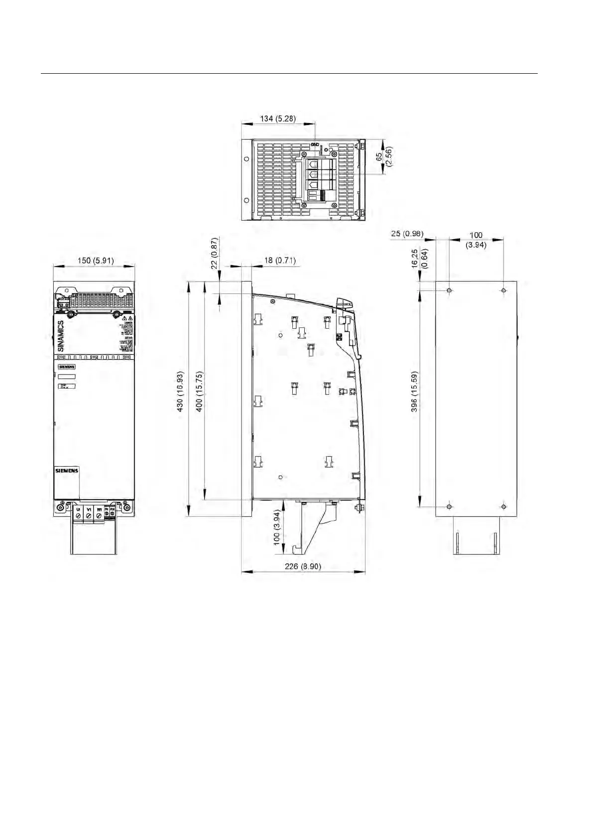 Figure 4-65 Dimension drawing of 40 kW Basic Line Module with cold plate, all dimensions in mm and (inches)