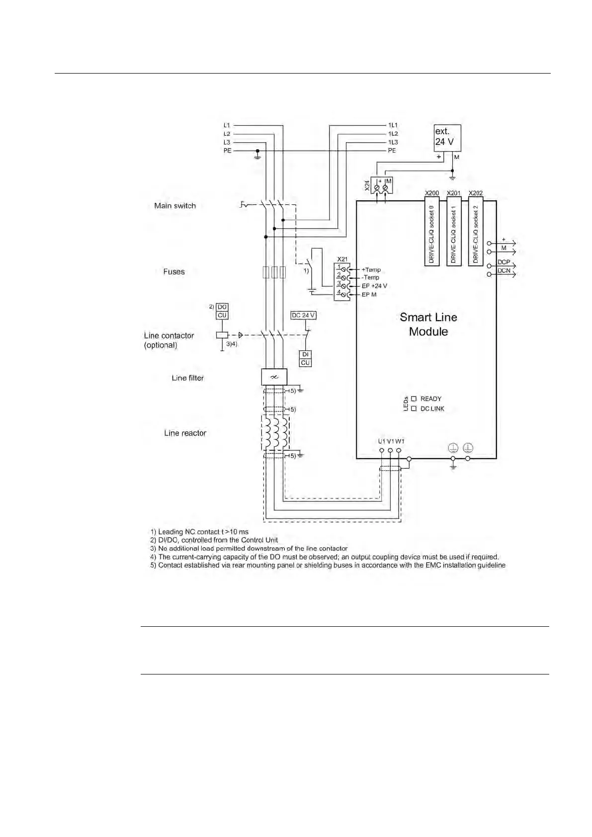 Figure 4-79 Connection example for 16 kW to 55 kW Smart Line Modules