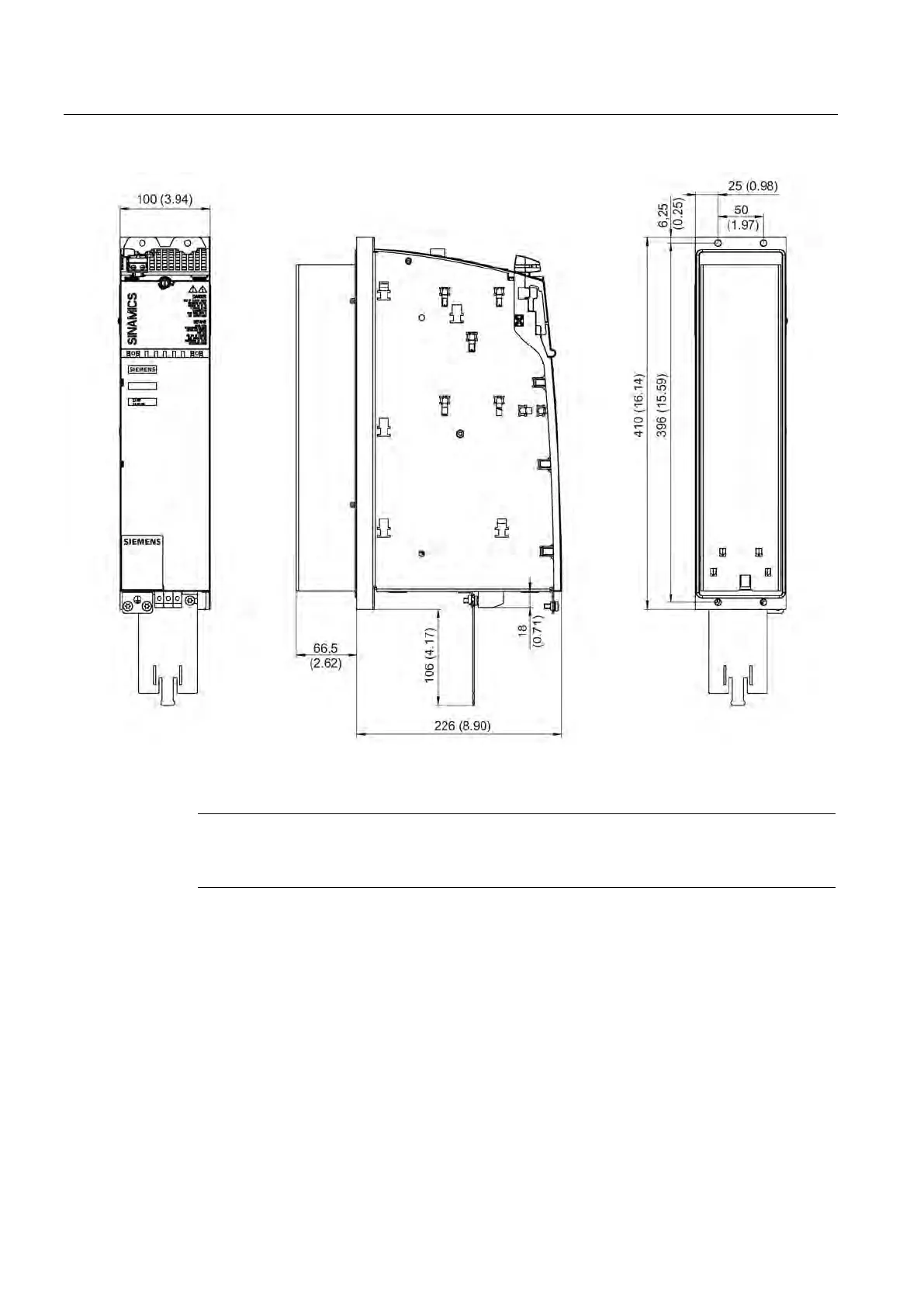 Figure 4-94 Dimension drawing of 16 kW Smart Line Module with external air cooling, all dimensions in mm and (inches)