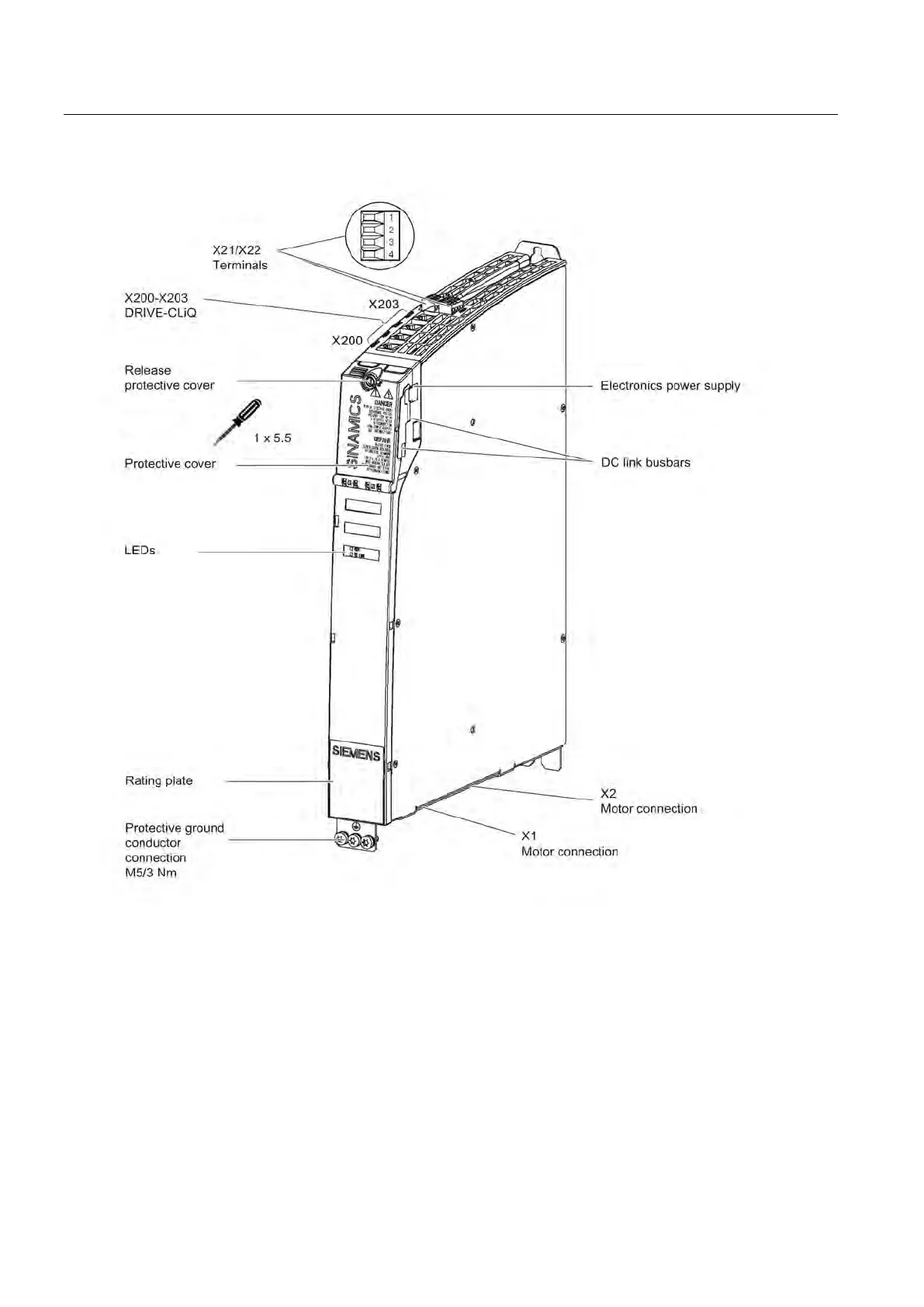 Figure 6-2 Interface overview, Double Motor Module Booksize with internal air cooling (example: 2 x 5 A)