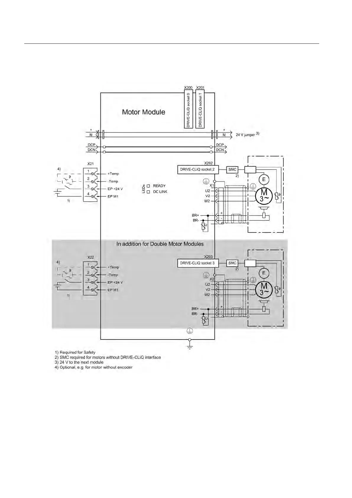 Figure 6-3 Connection example of Motor Modules 3 A to 30 A and Double Motor Modules 3 A to 18 A