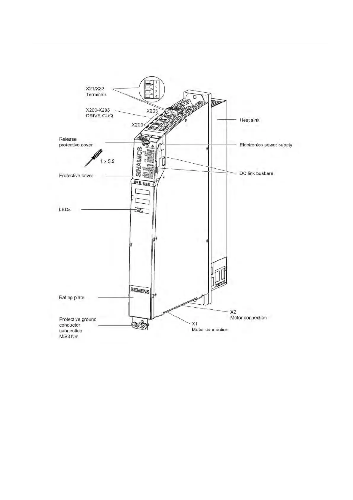 Figure 6-35 Interface overview, Double Motor Module Booksize with external air cooling (example: 2 x 5 A)
