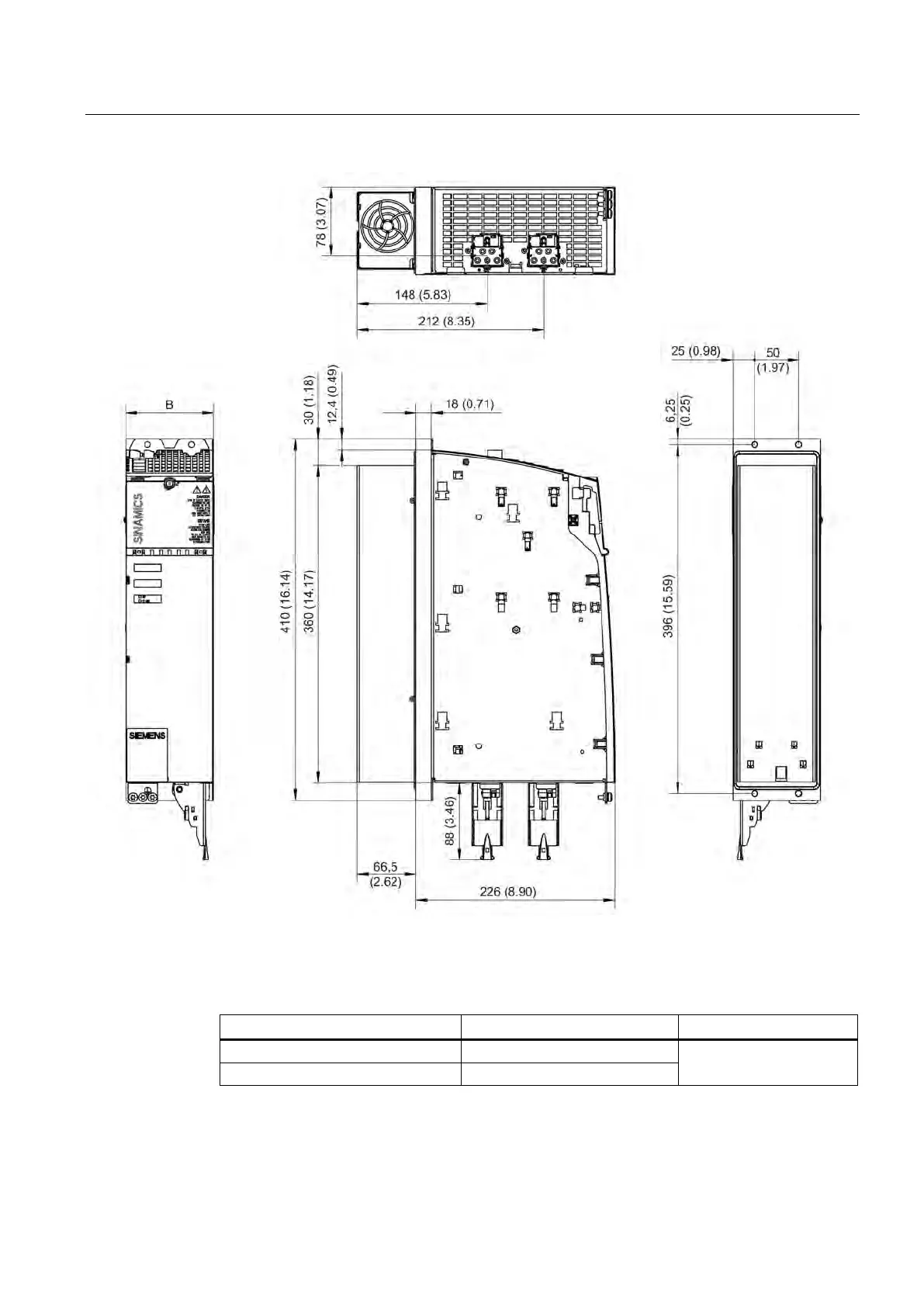 Figure 6-39 Dimension drawing of 30 A and 2 x 18 A Motor Modules Booksize with external air cooling, all dimensions in