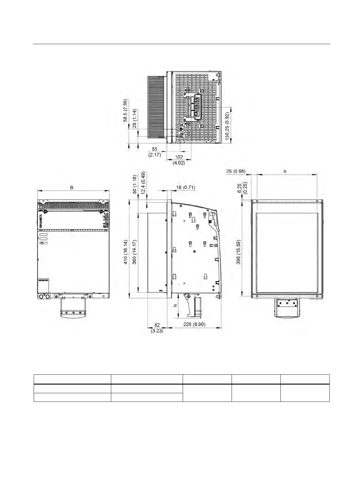 Figure 6-41 Dimension drawing of 132 A and 200 A Motor Modules Booksize, all dimensions in mm and (inches);