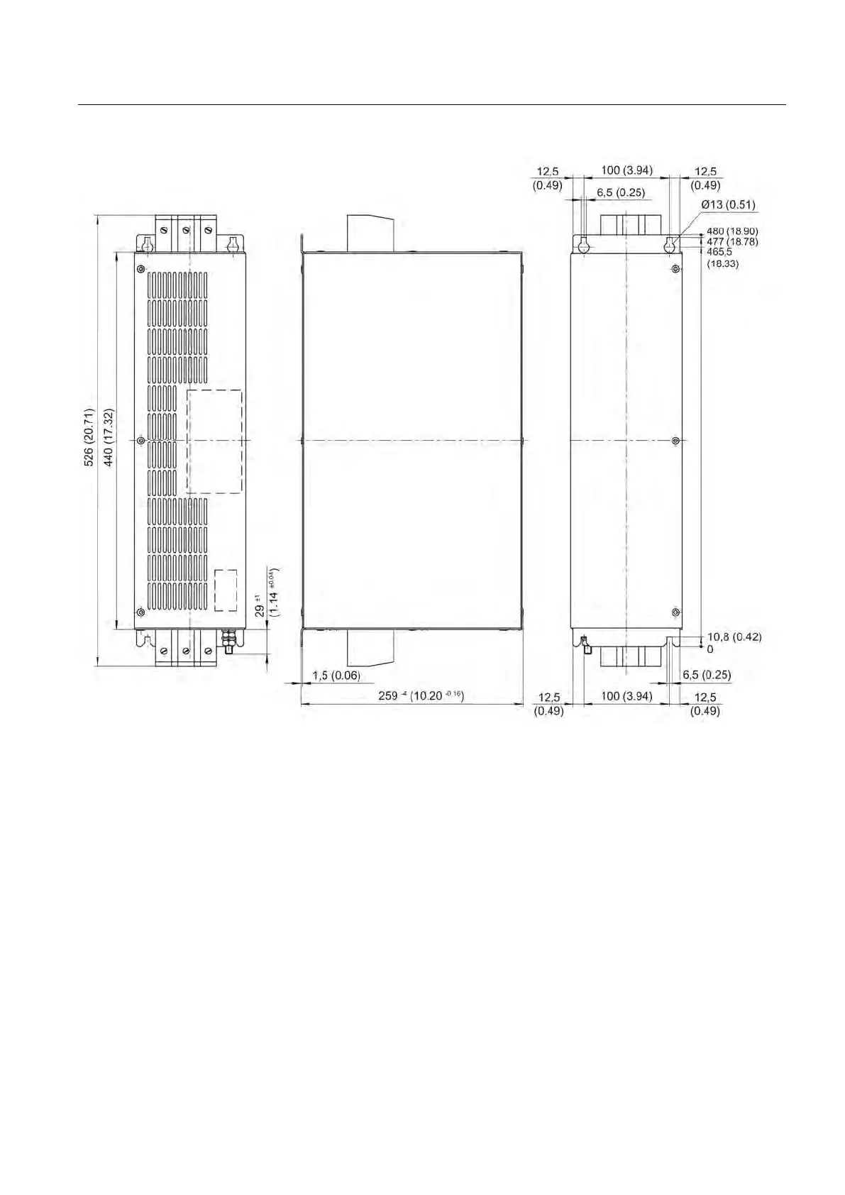 Figure 3-13 Dimension drawing of Wideband Line Filter 55 kW for Active Lines Modules, all dimensions in mm and