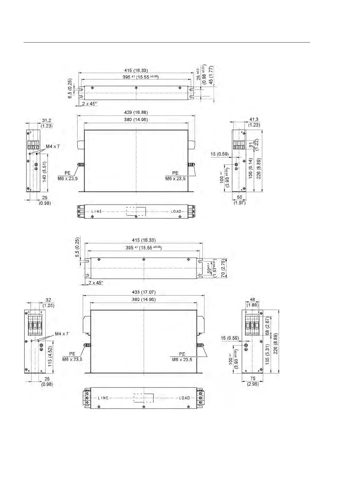 Figure 3-22 Dimension drawing of Basic Line Filter for Smart Line Modules 16 kW, all data in mm and (inches)
