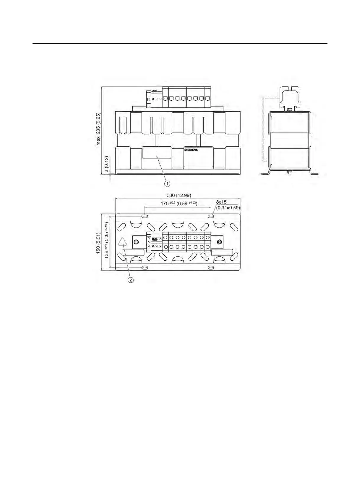 Figure 3-31 Dimension drawing of HFD line reactor 36 kW, all dimensions in mm and (inches)
