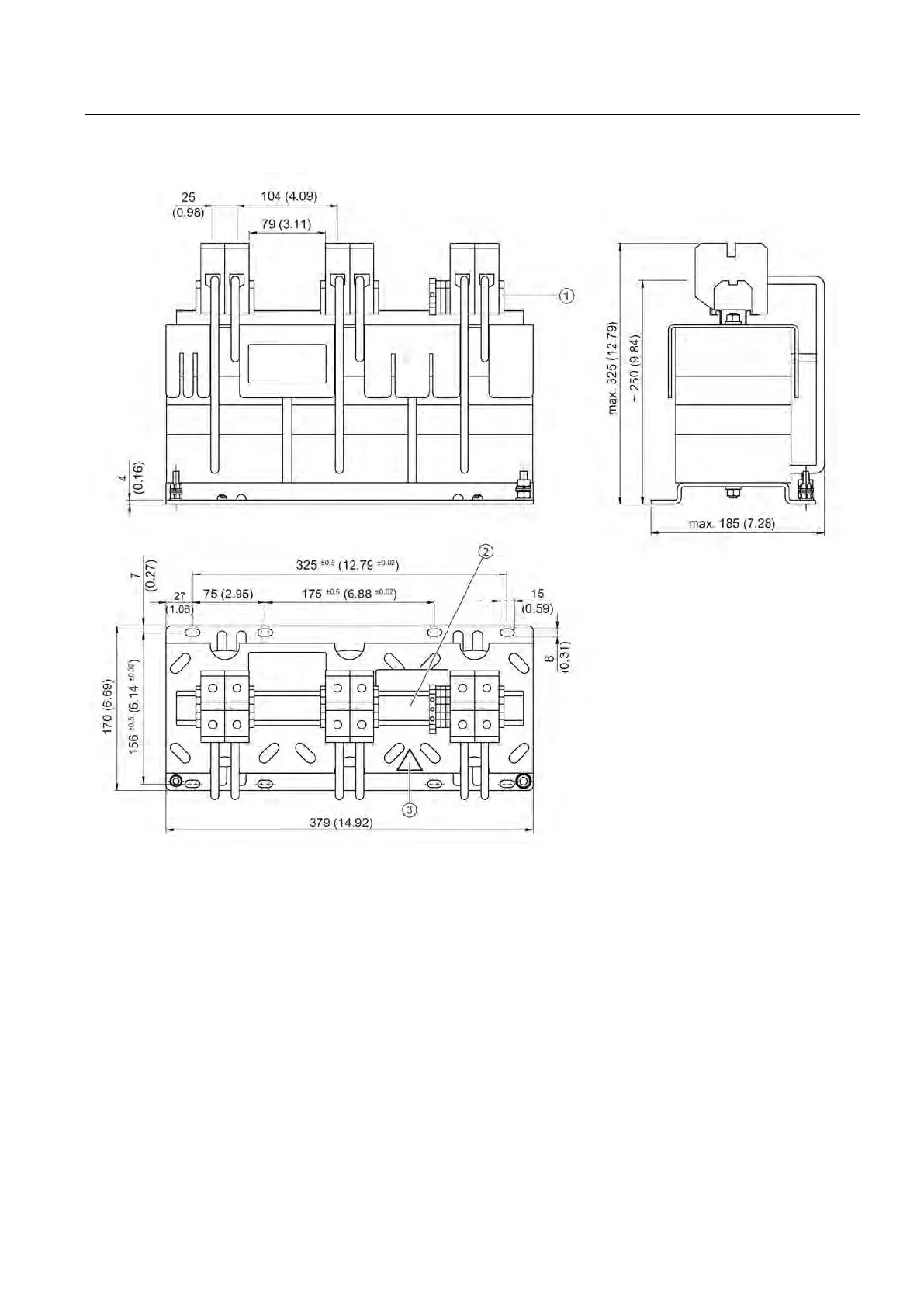 Figure 3-33 Dimension drawing of HFD line reactor 80 kW, all dimensions in mm and (inches)