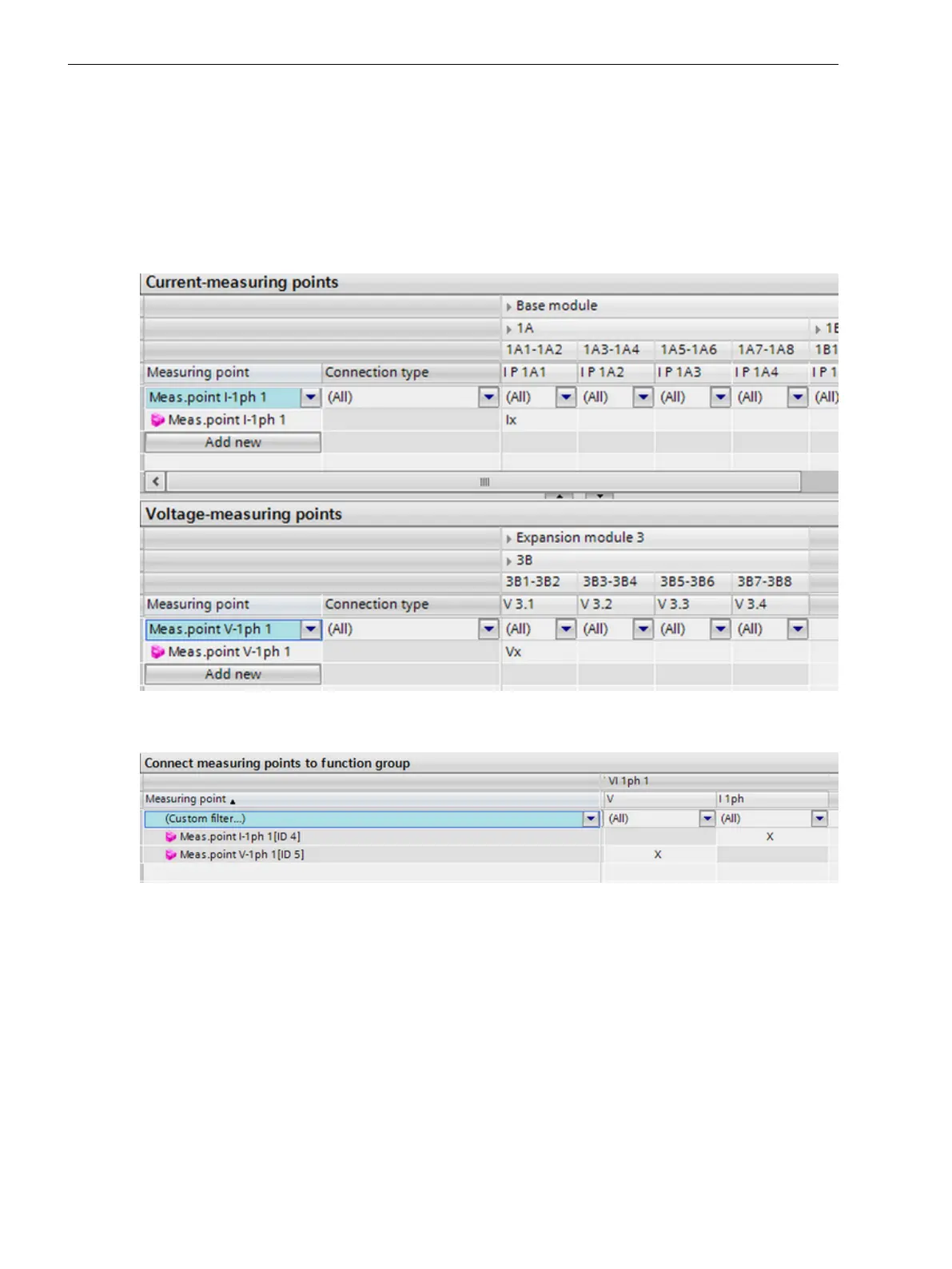Figure 6-7 Connecting Measuring Points to the Voltage/Current 1-Phase Function Group