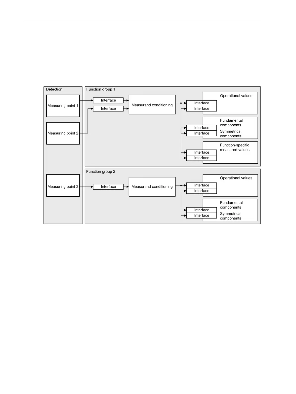 The measurands are recorded at the measuring points and forwarded to the function groups.