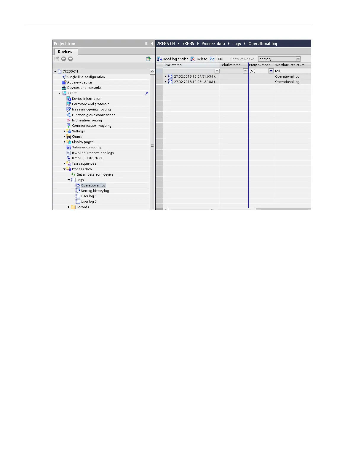 To reach the operational log via the main menu, use the navigation keys of the on-site operation panel.