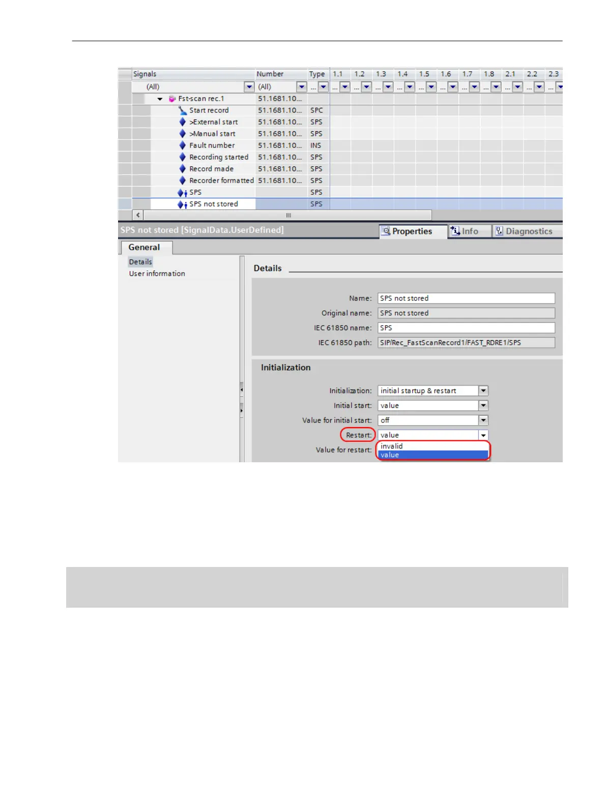 Single-Point Indication SPS Unsaved (Example: 7KE85 Fault Recorder)