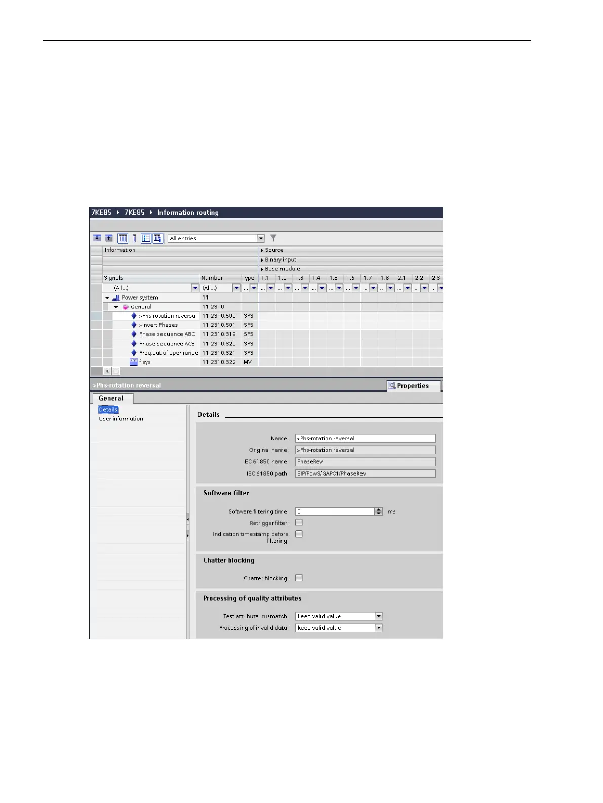 The settings for indication filtering can be found at the individual signals. The next figure shows the parame-