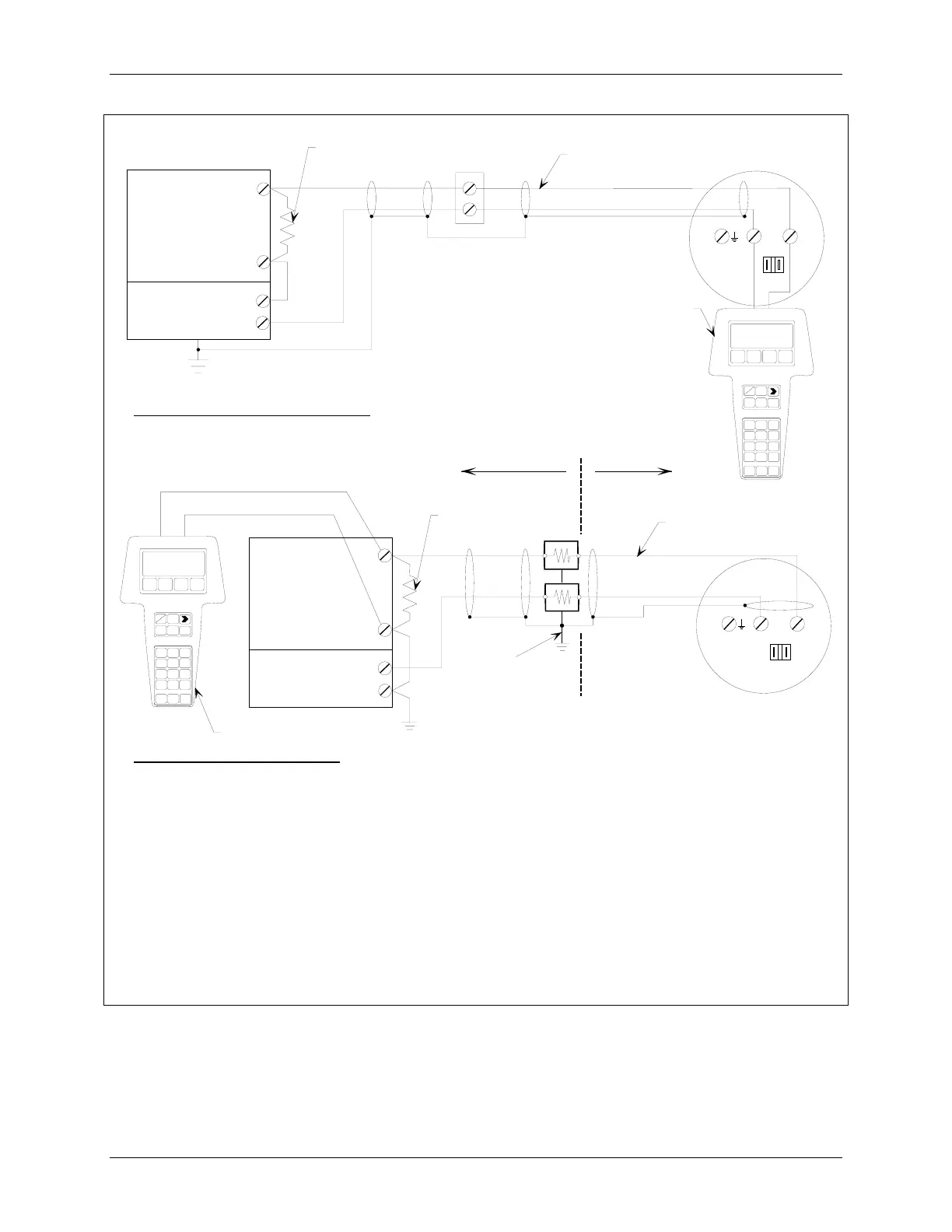 Connect the HART Communicator as shown in Figure 2-2 for hazardous and non-hazardous locations. The HART