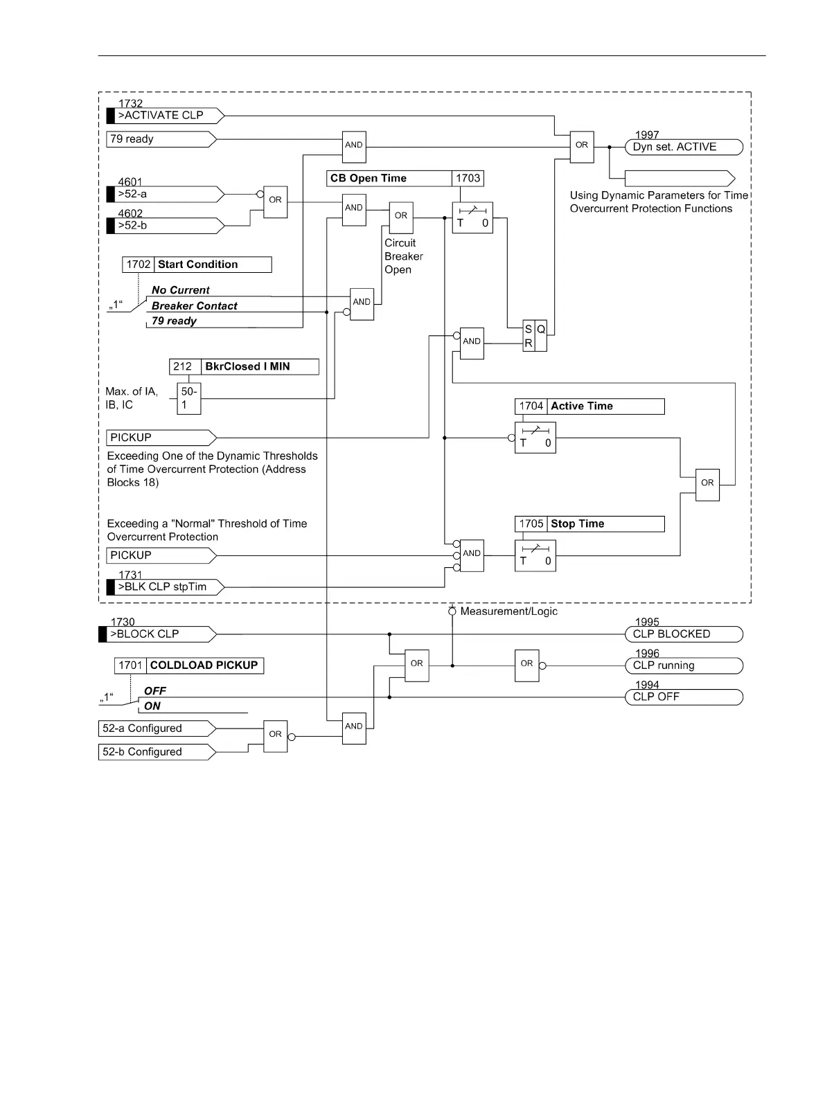 Depending on the starting condition of the cold load pickup function, address 1702 Start Condition is set
