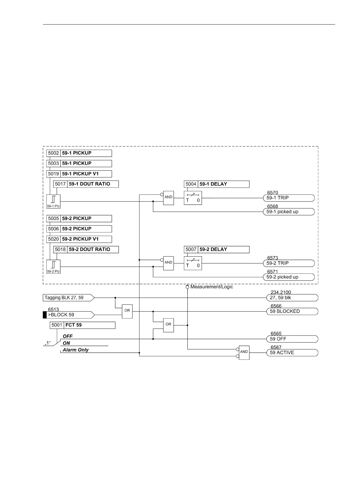 The logic diagram also applies to setting the phase-specific overvoltage protection (Vphph selective or