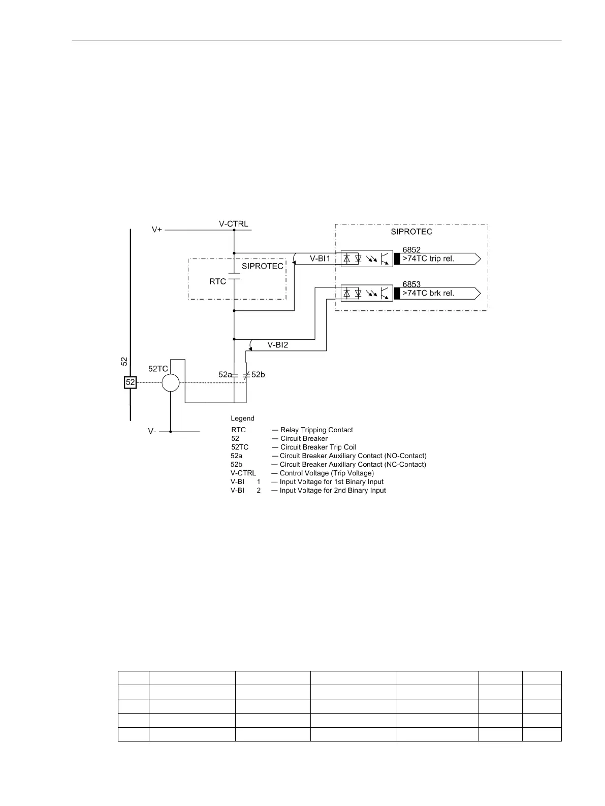 Depending on the conditions of the trip contact and the circuit breaker, the binary inputs are activated (logical