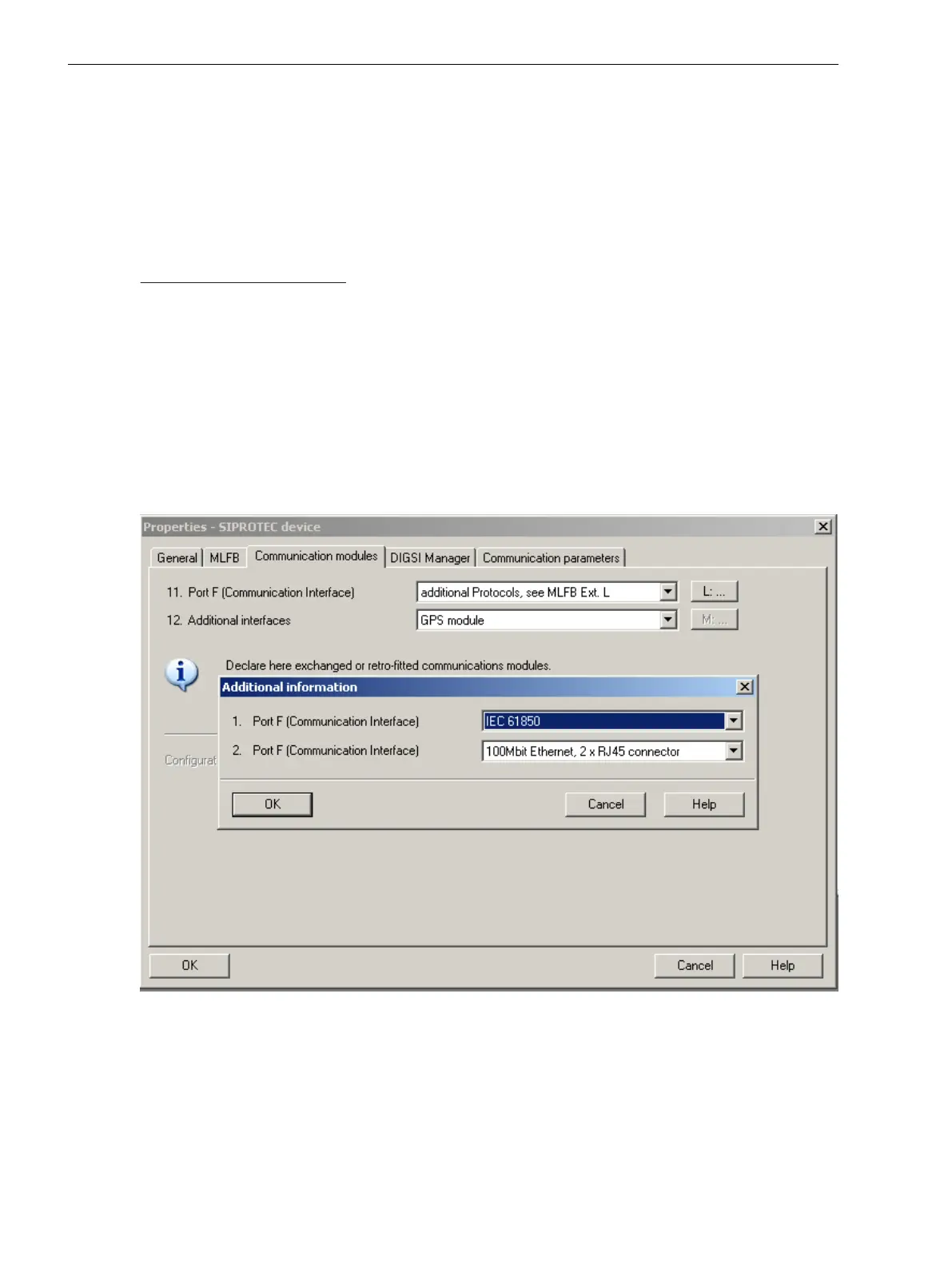 erties... to open the Properties - SIPROTEC 4 Device dialog box (see following figure ). In the Communica-