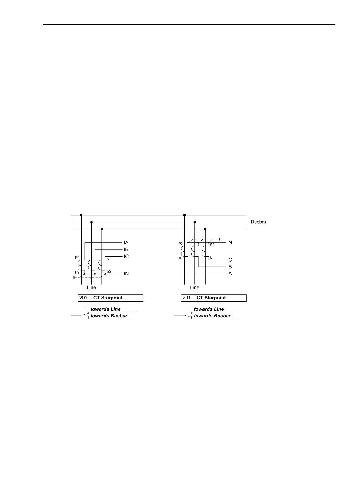 CT neutral point (the following figure applies correspondingly for two current transformers). This setting