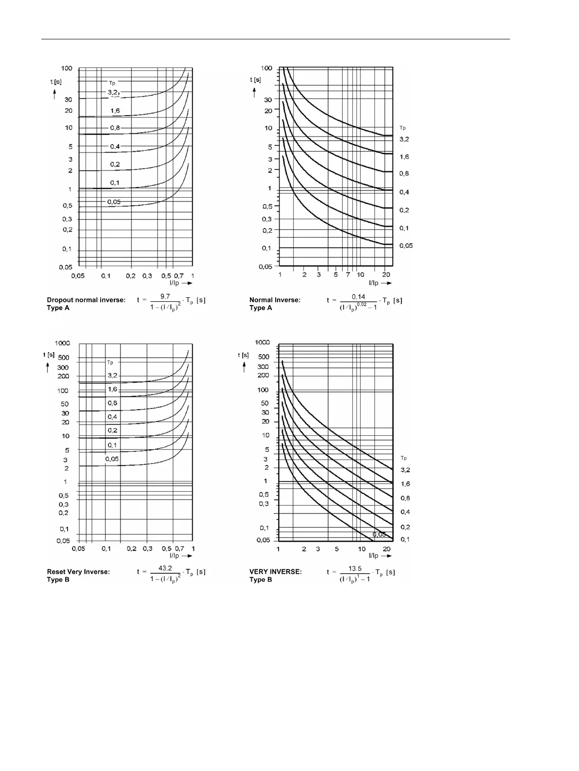 Dropout time and trip time curves of the inverse time overcurrent protection, acc. to IEC