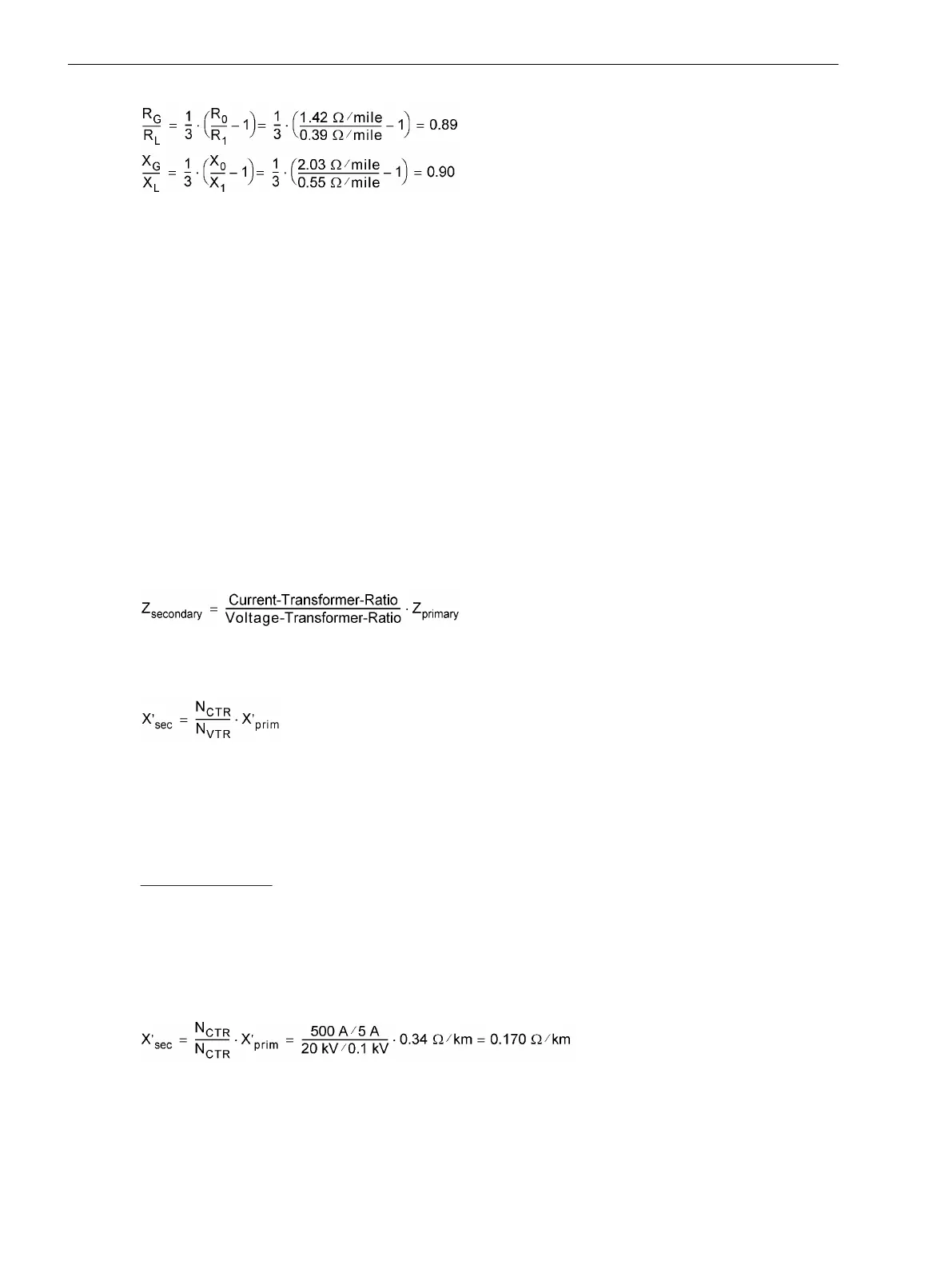 In the following, the same line as illustrated in the example for ground impedance ratios (above) and addi-