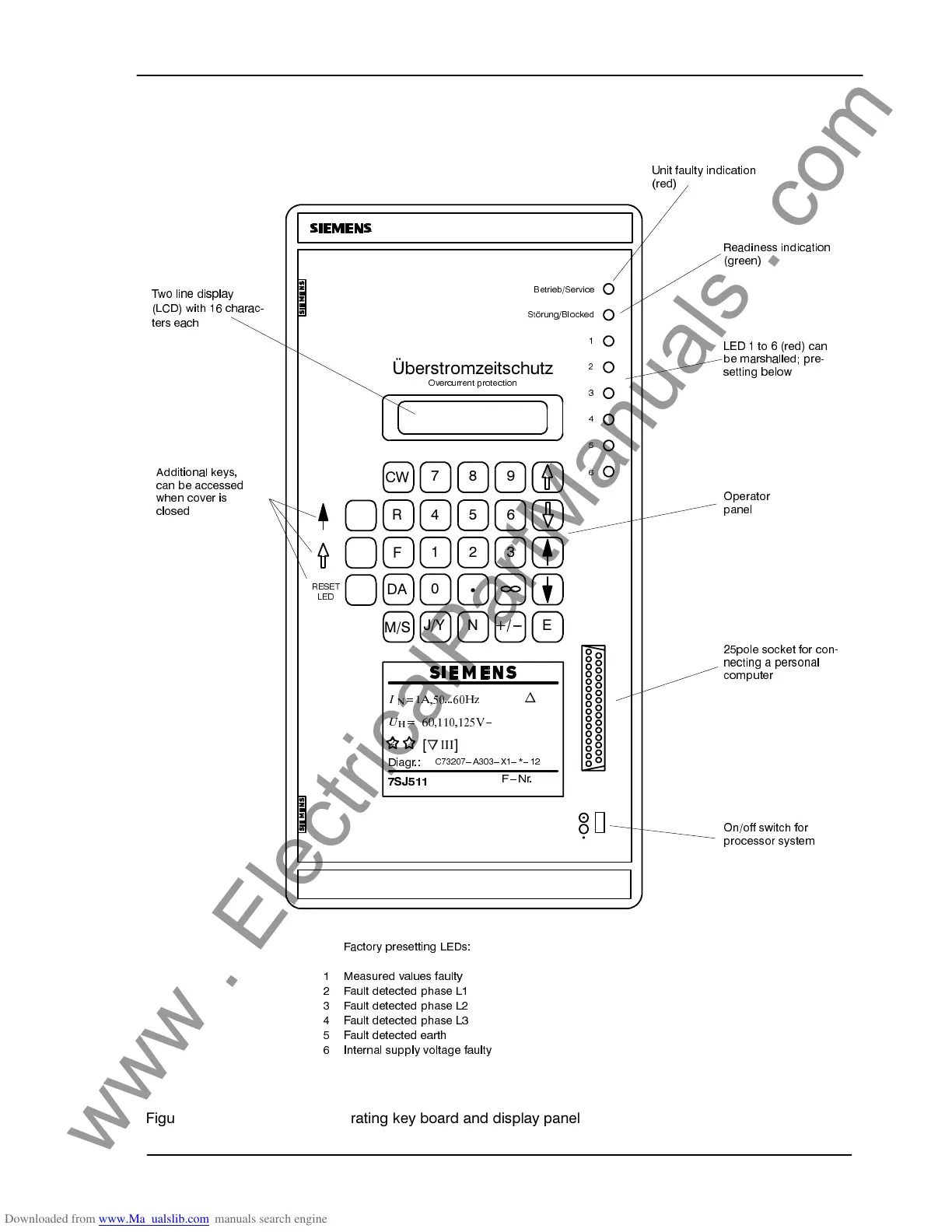 )LJXUH )URQW YLHZ RI RSHUDWLQJ NH\ ERDUG DQG GLVSOD\ SDQHO