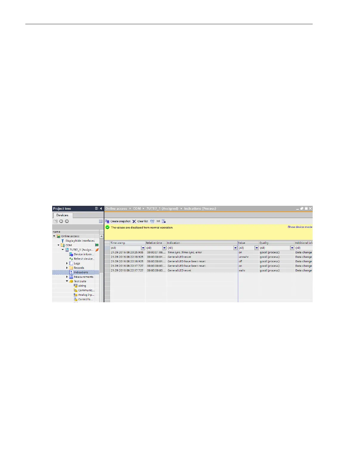 With DIGSI 5 you have the possibility of displaying all currently transmitted indications of the selected device