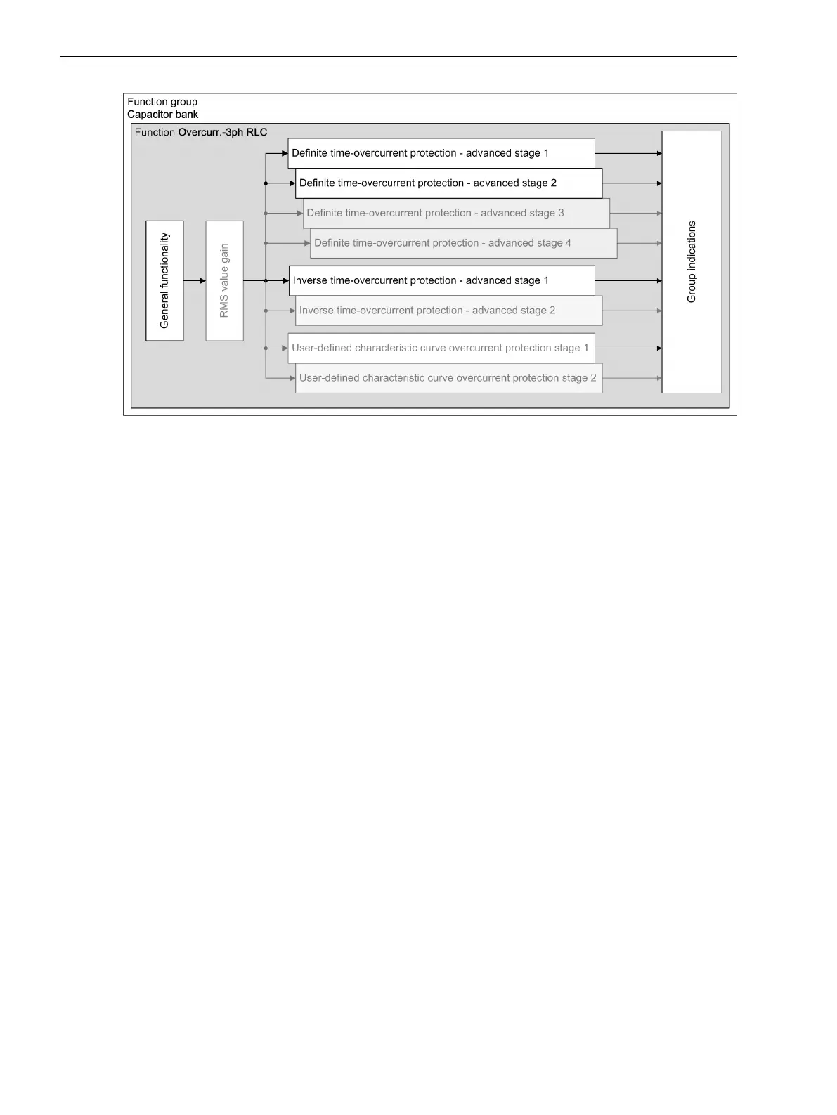 connected to the I 3ph RLC interface in the Capacitor bank function group. The Overcurr. -3ph RLC function