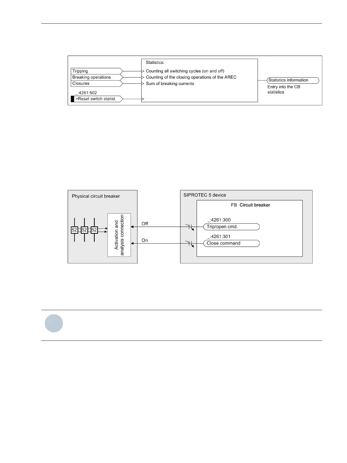 By routing the Trip/open cmd. signals to 1 or 2 binary outputs, you can carry out 1, 1.5, and 2-pole activa-