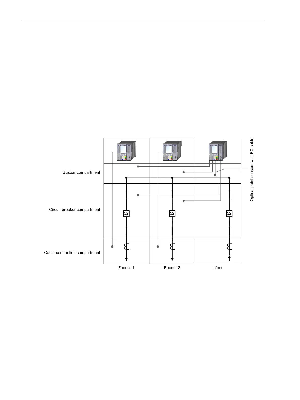 Connecting the optical point sensors to the protection devices in the feeders and the infeed