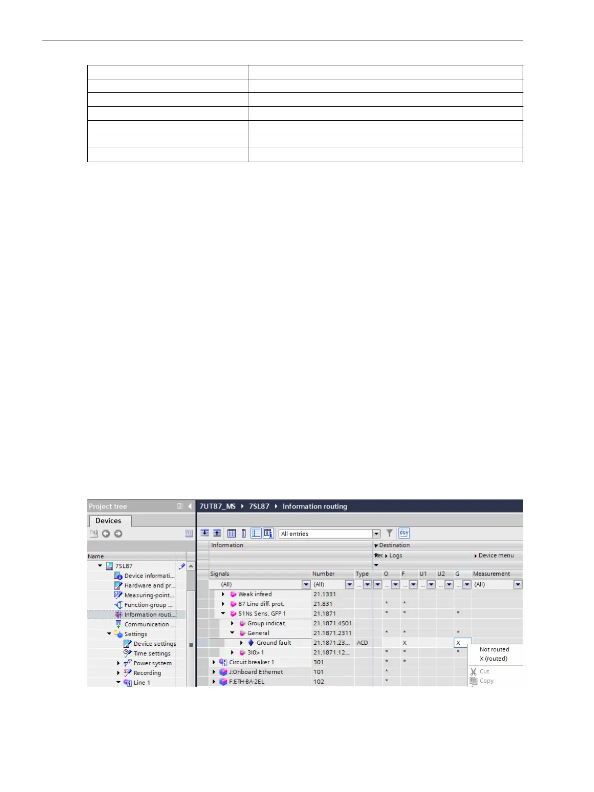 To reach the information routing of your SIPROTEC 5 device, use the project-tree window. Access is only