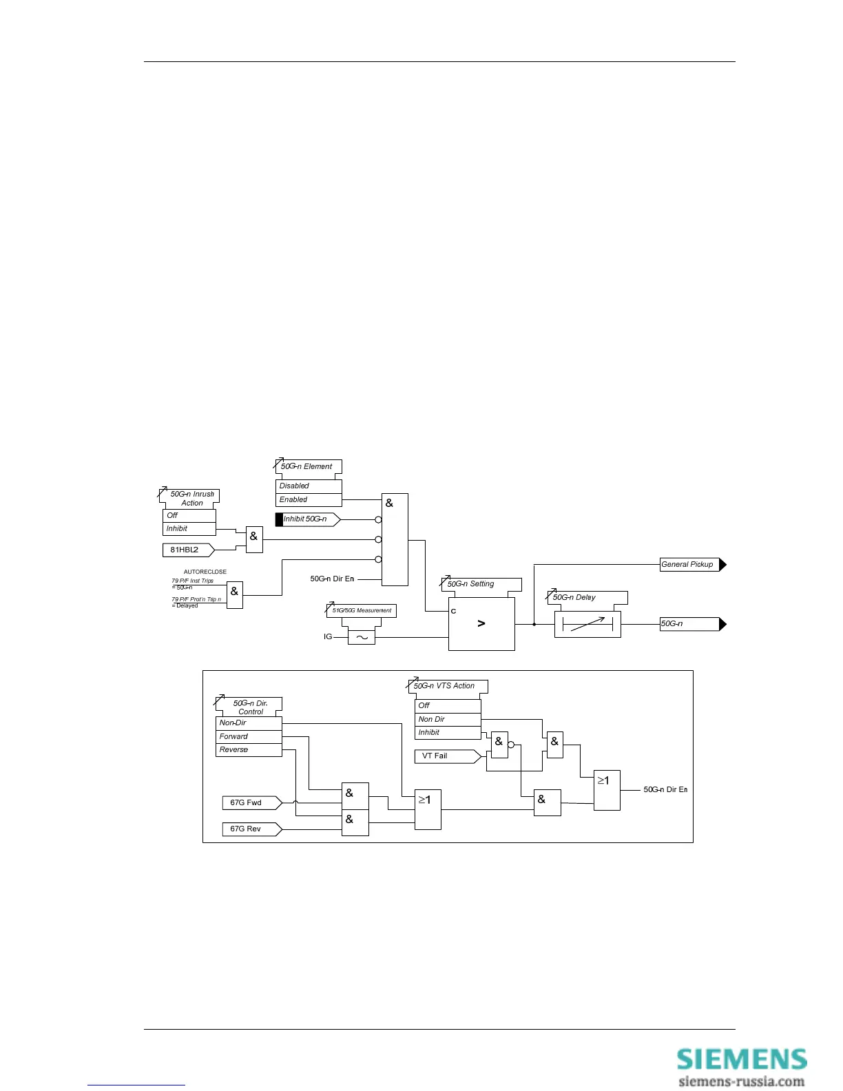 Where directional elements are present the direction of operation can be set using 50G-n Dir. Control setting.