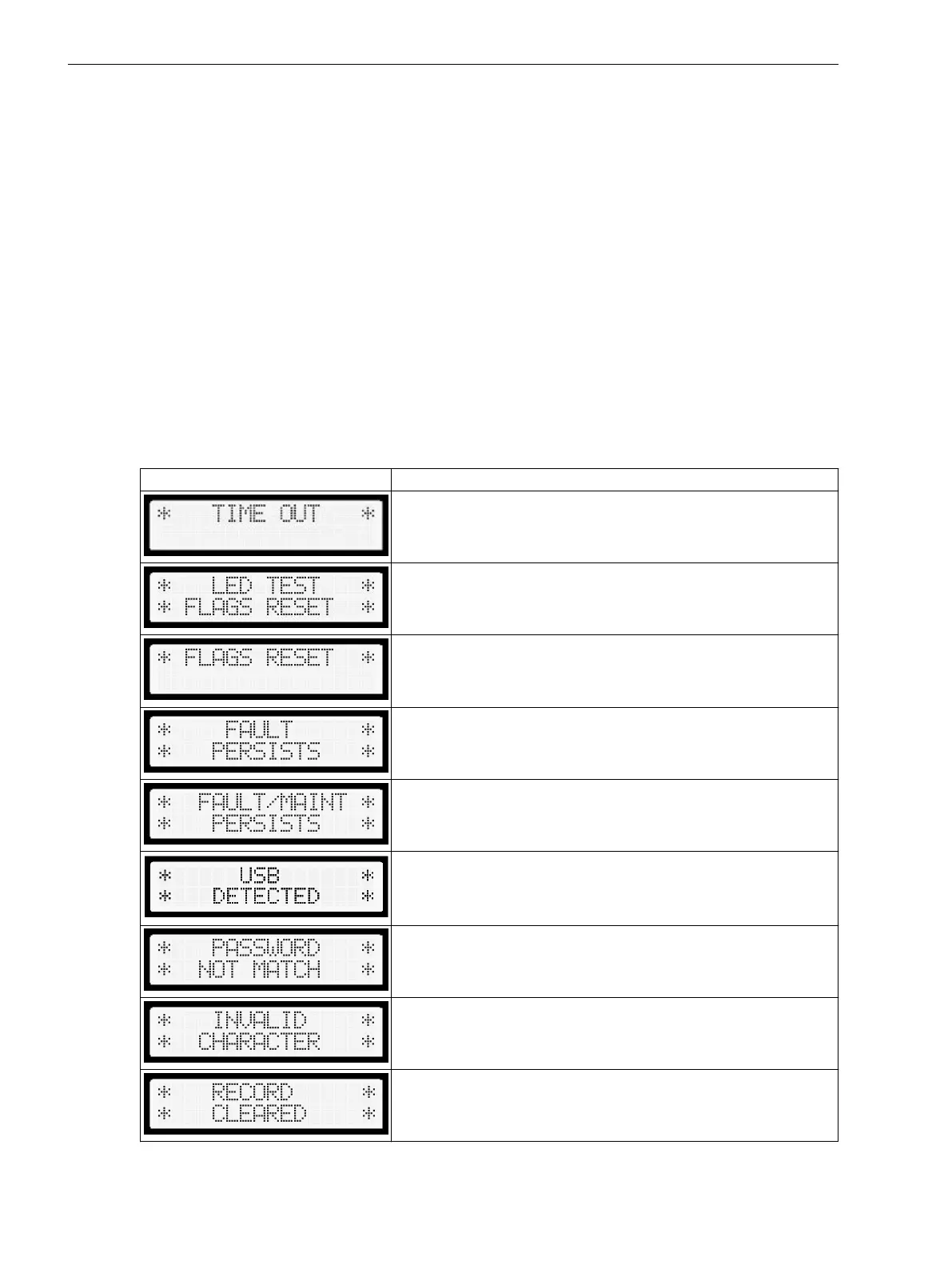 This alert appears when the fault flags are reset and an LED test is