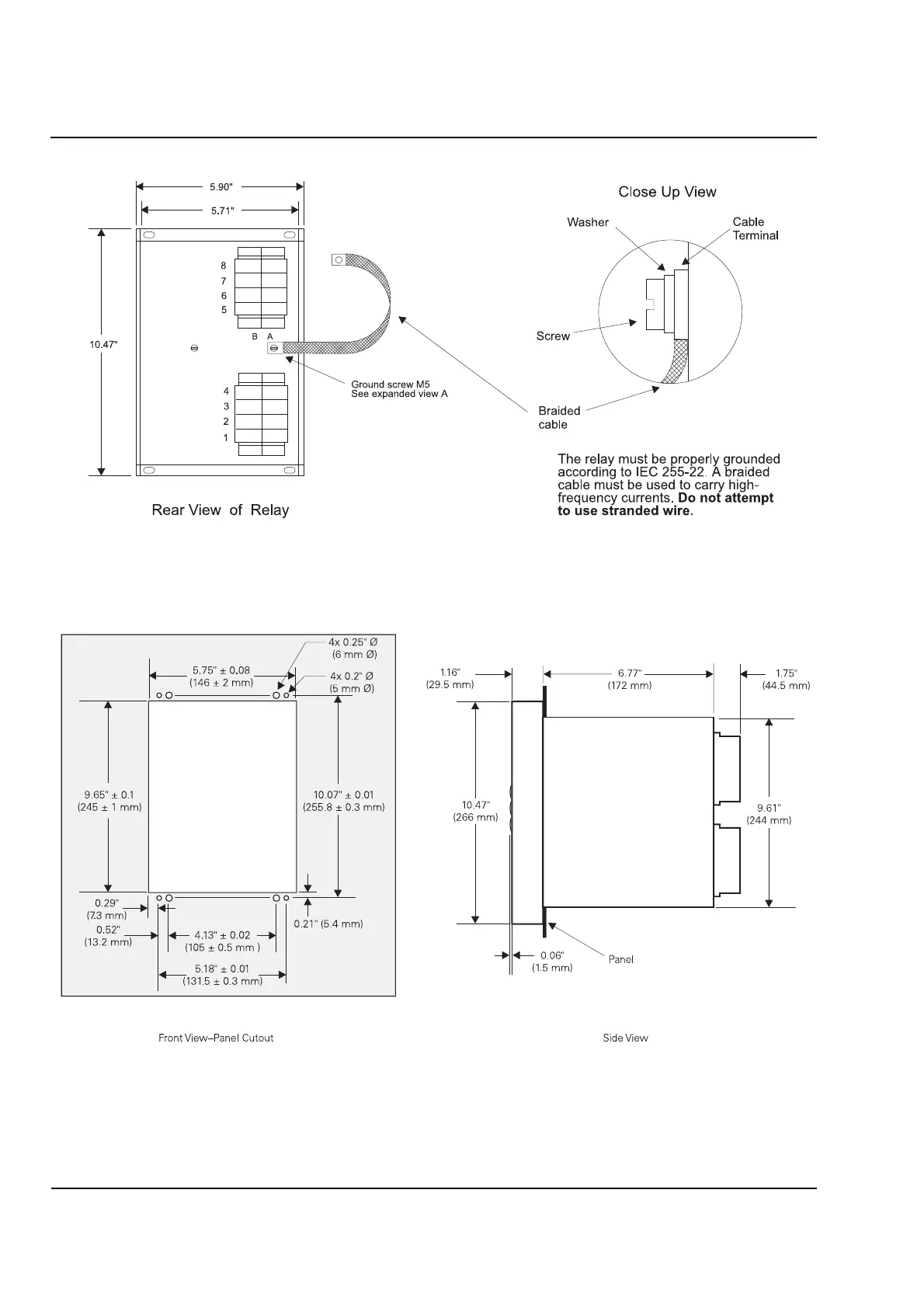 Dimensions of Case and Panel Cutout for a 7UT512 Relay