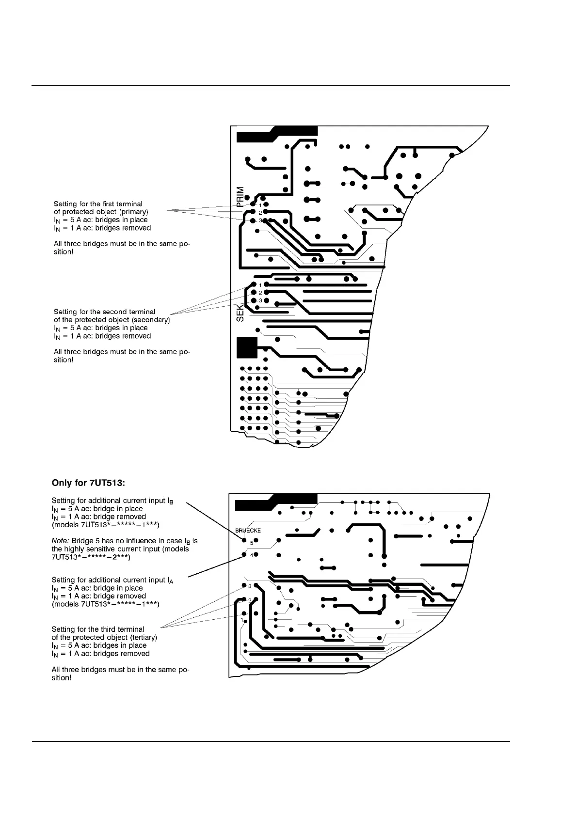 Locations of Jumpers for Setting Rated Nominal Current of Current Inputs (Production Series /JH or Earlier).