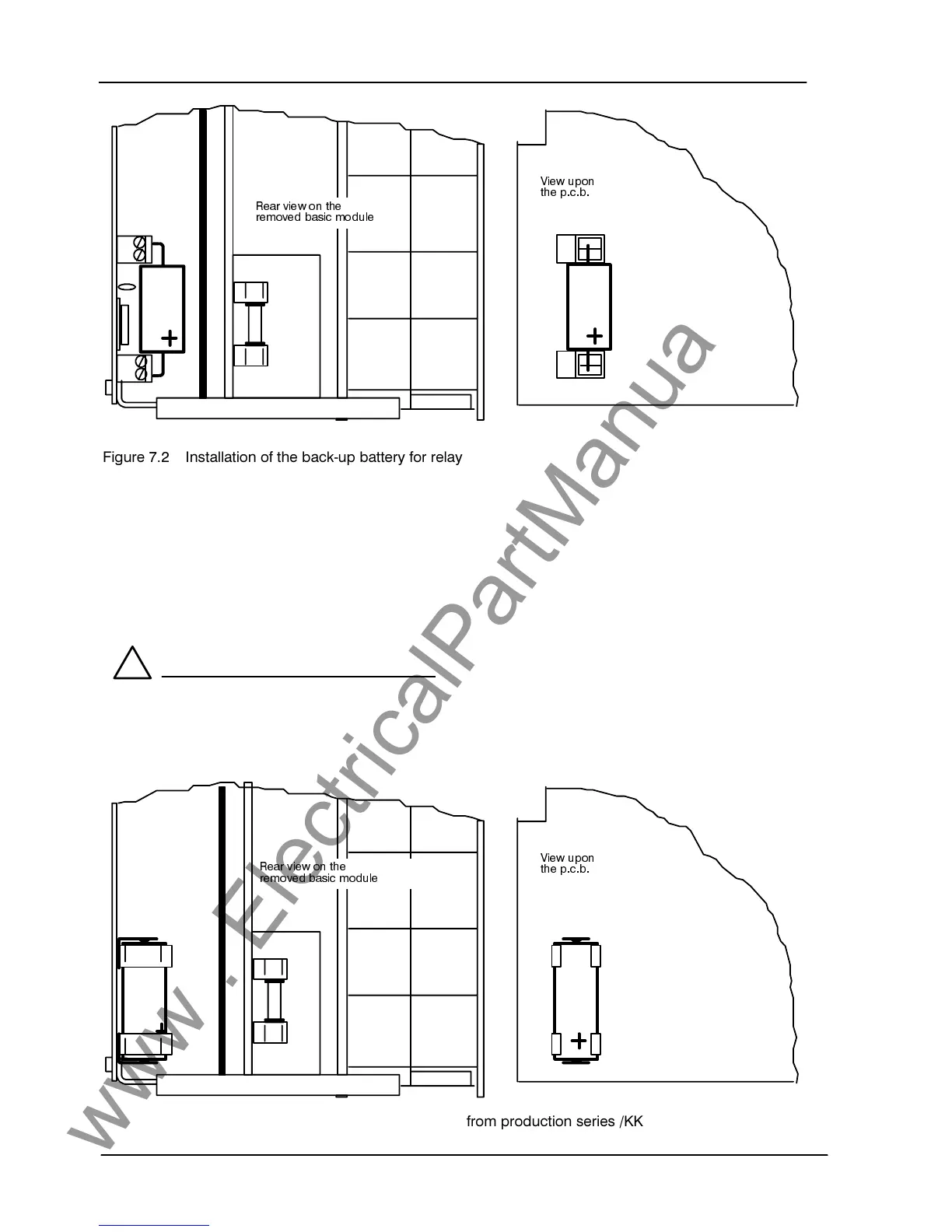 )LJXUH ,QVWDOODWLRQ RI WKH EDFNXS EDWWHU\ IRU UHOD\ IURP SURGXFWLRQ VHULHV ..