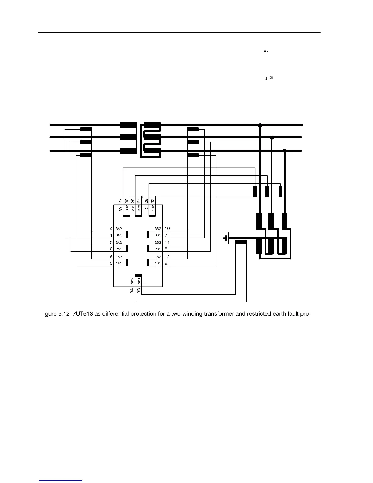 )LJXUH 87 DV GLIIHUHQWLDO SURWHFWLRQ IRU D WZRZLQGLQJ WUDQVIRUPHU DQG UHVWULFWHG HDUWK IDXOW SUR