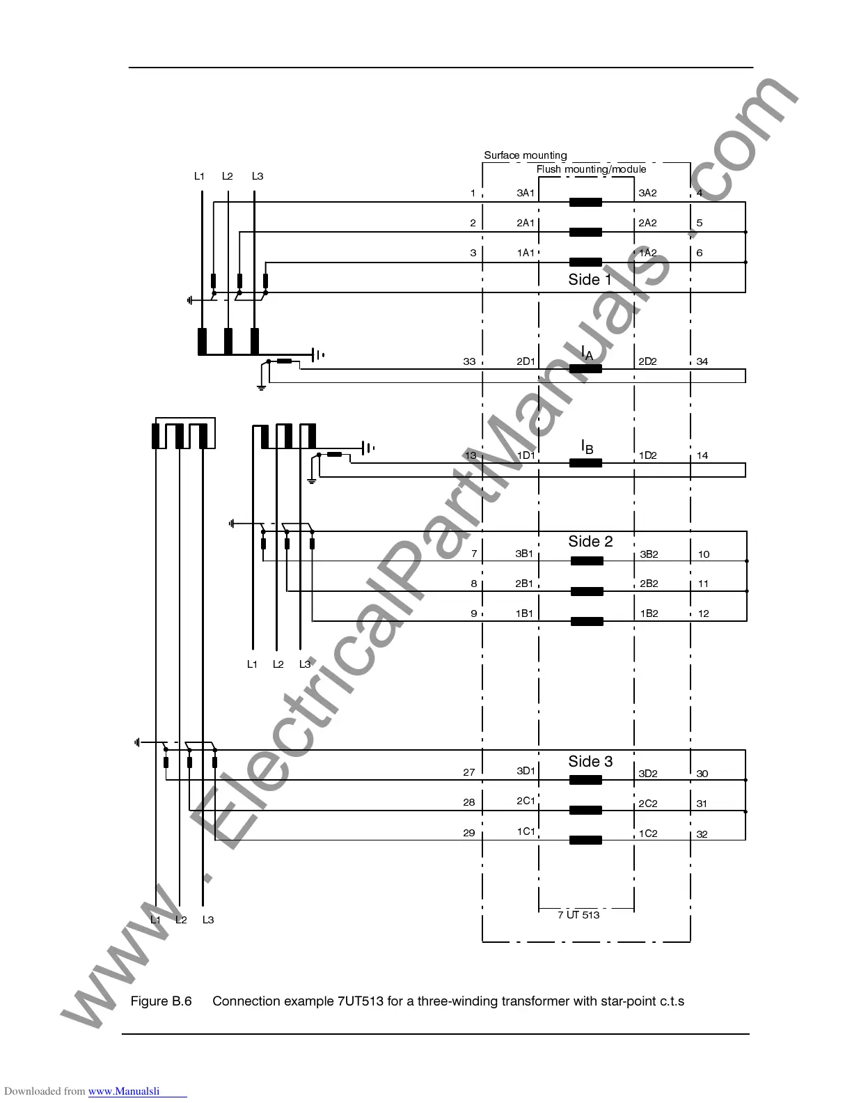 )LJXUH % &RQQHFWLRQ H[DPSOH 87 IRU D WKUHHZLQGLQJ WUDQVIRUPHU ZLWK VWDUSRLQW FWV