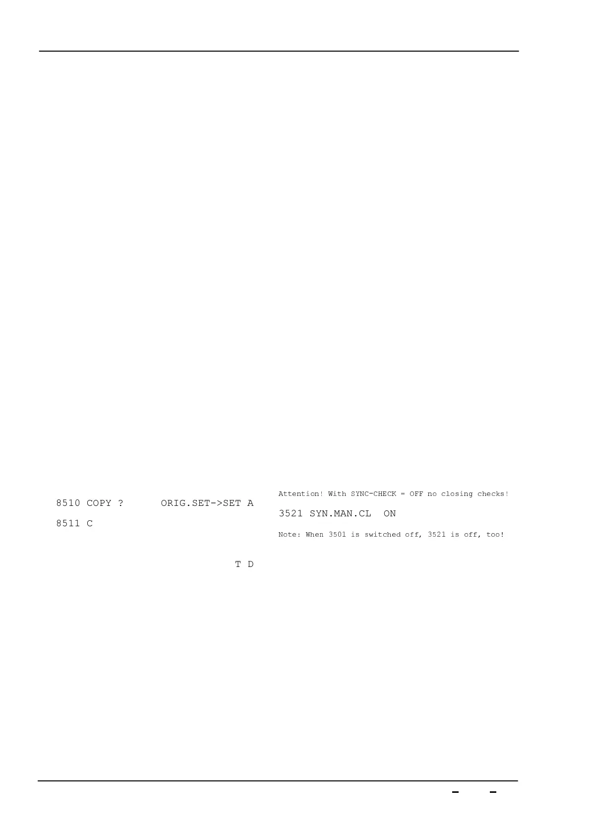 Attention! With SYNC-CHECK = OFF no closing checks!