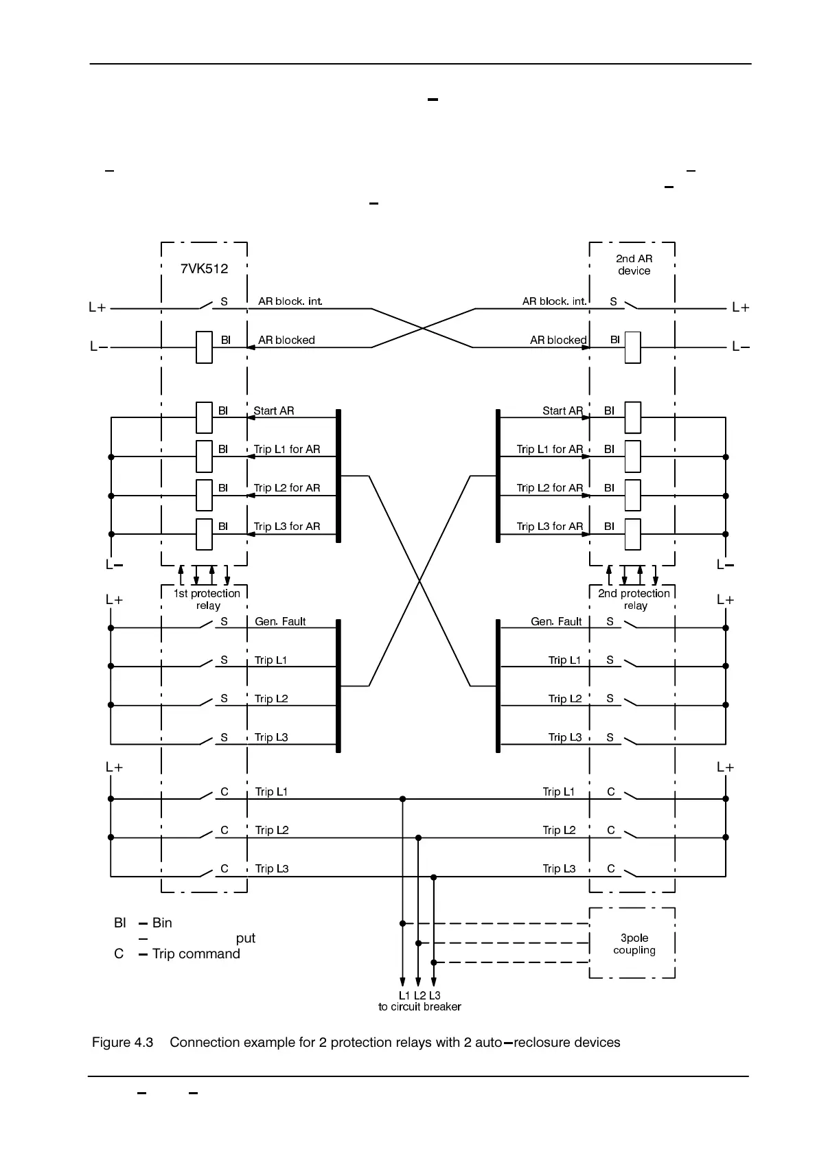 &IGURE #ONNECTION EXAMPLE FOR PROTECTION RELAYS WITH AUTO RECLOSURE DEVICES