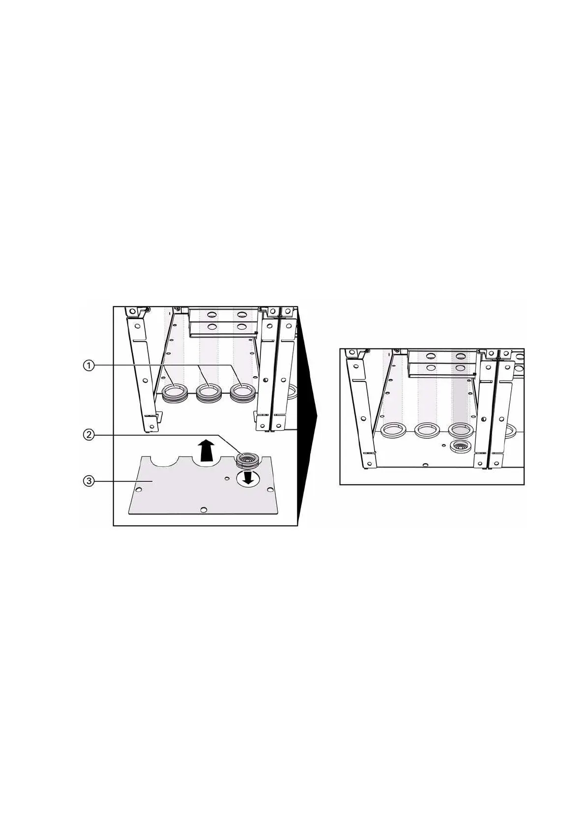 Fig. 65: Inserting the front floor cover and the rubber sleeves (switchgear up to 21 kA)