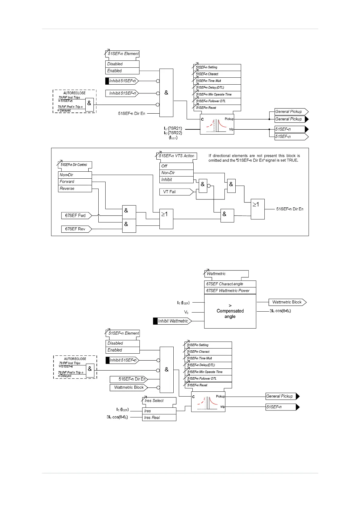 Siemens Argus 7SR21 - Figure 3.5.3-1 Logic Diagram: 51 SEF Time Delayed Element; Figure 3.5.3-2 Logic Diagram: 51 SEF Time Delayed Element Compensated Networks