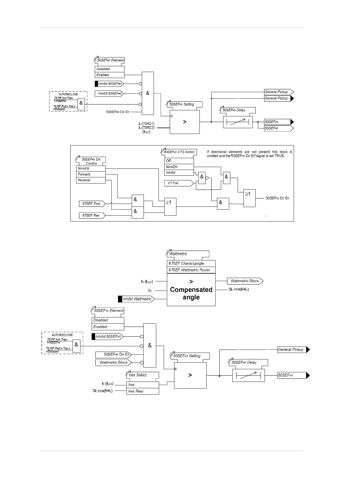 Siemens Argus 7SR22 - Figure 3.5.2-1 Logic Diagram: 50 SEF Instantaneous Element; Figure 3.5.2-2 Logic Diagram: 50 SEF Instantaneous Element Compensated Networks