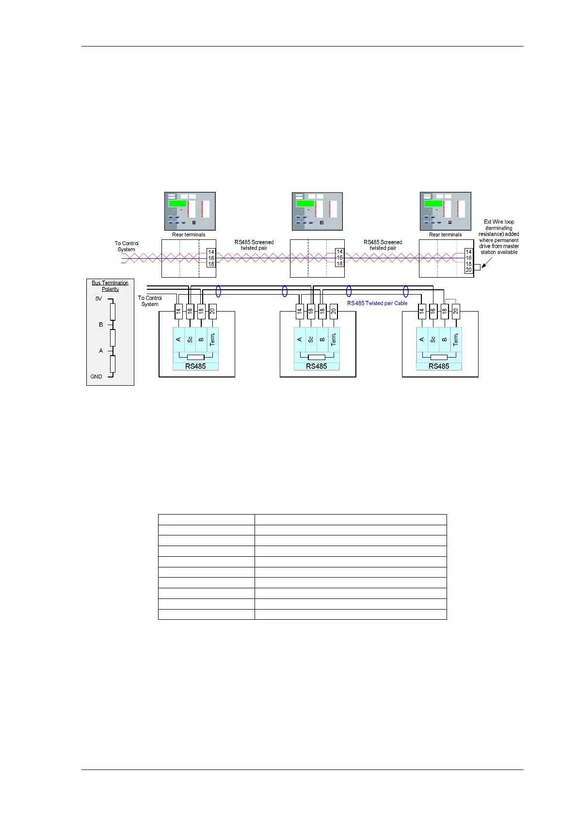 using a suitable RS485 120 Ohm screened twisted pair cable.